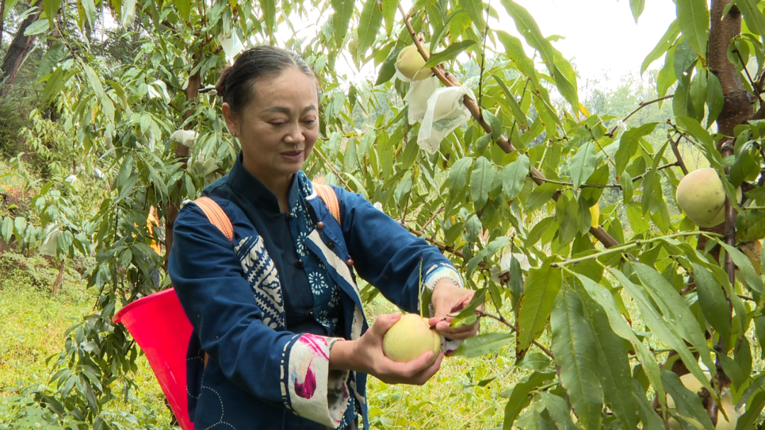 另一边,在鸡场坡镇果骂村,龚婷和丈夫黄文种植的十余亩冬桃历经五年时间迎来了首次采摘。由于品质上乘,慕名而来采摘的游客络绎不绝,大家在果园中精心挑选着个大饱满的桃子,有的还迫不及待现场品尝。