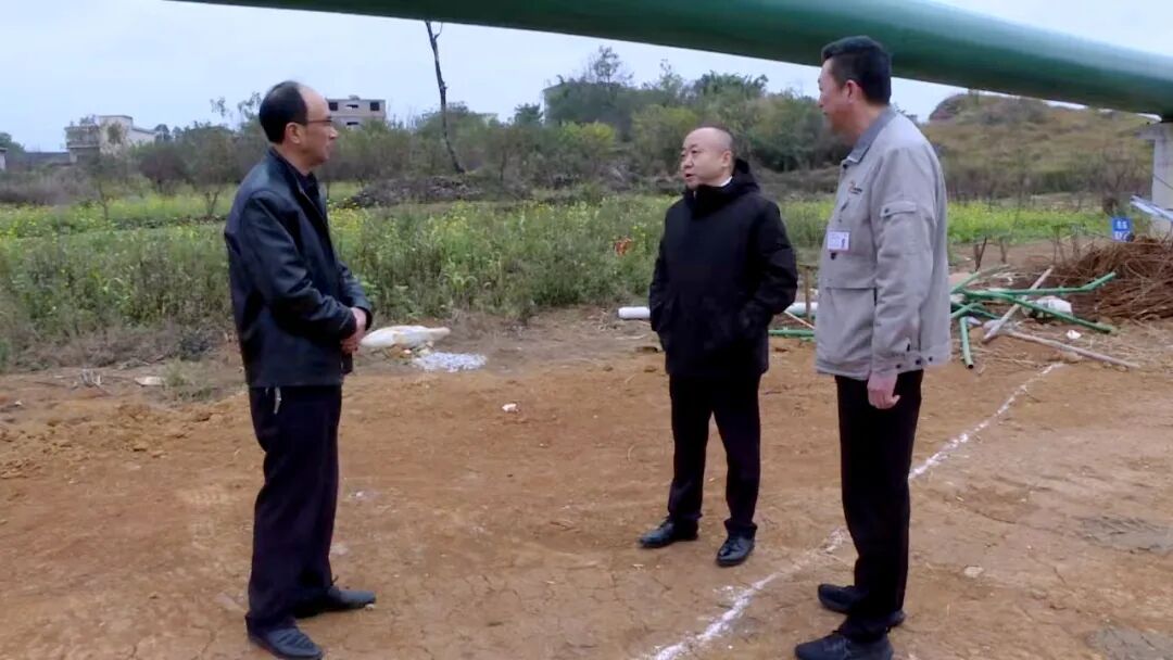 在黄桶街道安顺电厂长输蒸汽管线项目施工点,吕庆实地查看管线建设情况,与企业负责同志深入交流,详细了解项目供气量及供气地区。