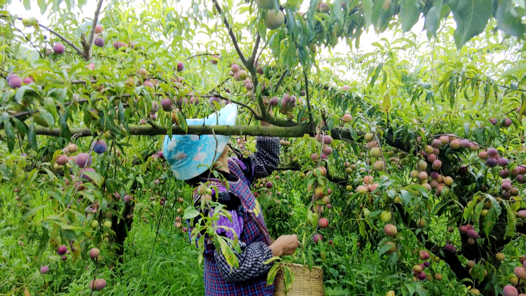 据了解,这个基地里务工的农户均来自周边村寨,并且都像蔺益贵家一样全家总动员来此摘“李”挣钱。