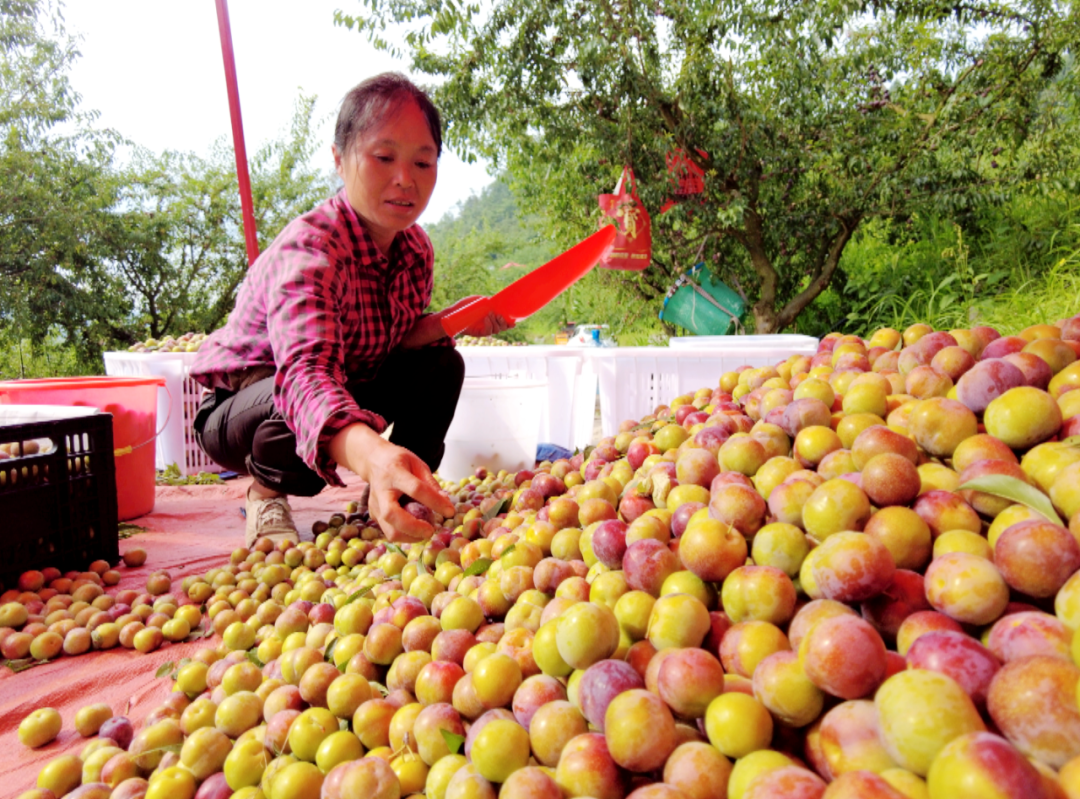 脆红李个头大、肉厚、汁多、味甜、果面干脆,深受收购商及消费者喜爱。每到丰收时节,收购商都会直达果园,在李子地里设置收购点,农户刚采摘下来的新鲜李子经过分拣之后就能直接打包装车。