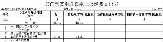 2024年度“三公”经费一般公共预算财政拨款支出预算 34.06万元,比上年减少0.94万元,降低2.69 %,减少原因是:厉行节约,压缩三公经费支出。其中,因公出国(境)费支出0万元,占0 %,比上年增加(减少)0万元,增长(降低) 0 %,增加(减少)原因是:无此项支出;公务用车购置及运行维护费支出34.06万元,占100 %,比上年减少0.94万元,降低2.69 %,减少原因是厉行节约,压缩三公经费支出;公务接待费支出0万元,占0 %,比上年增加(减少)0 万元,增长(降低)0 %,增加(减少)原因是:无此项支出。具体情况如下: