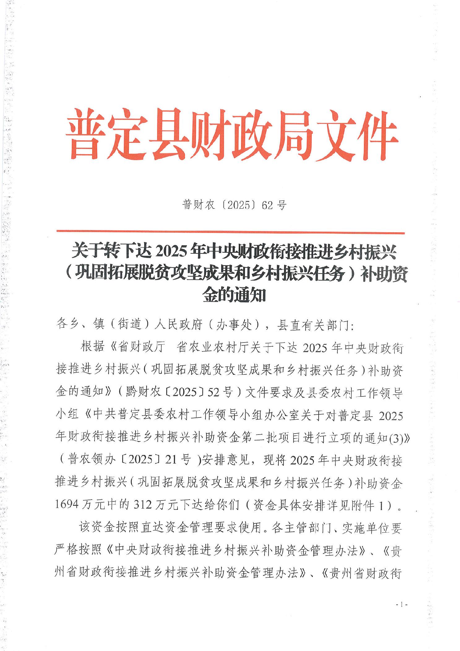 关于转下达2025年中央财政衔接推进乡村振兴(巩固拓展脱贫攻坚成果和乡村振兴任务)补助资金的通知