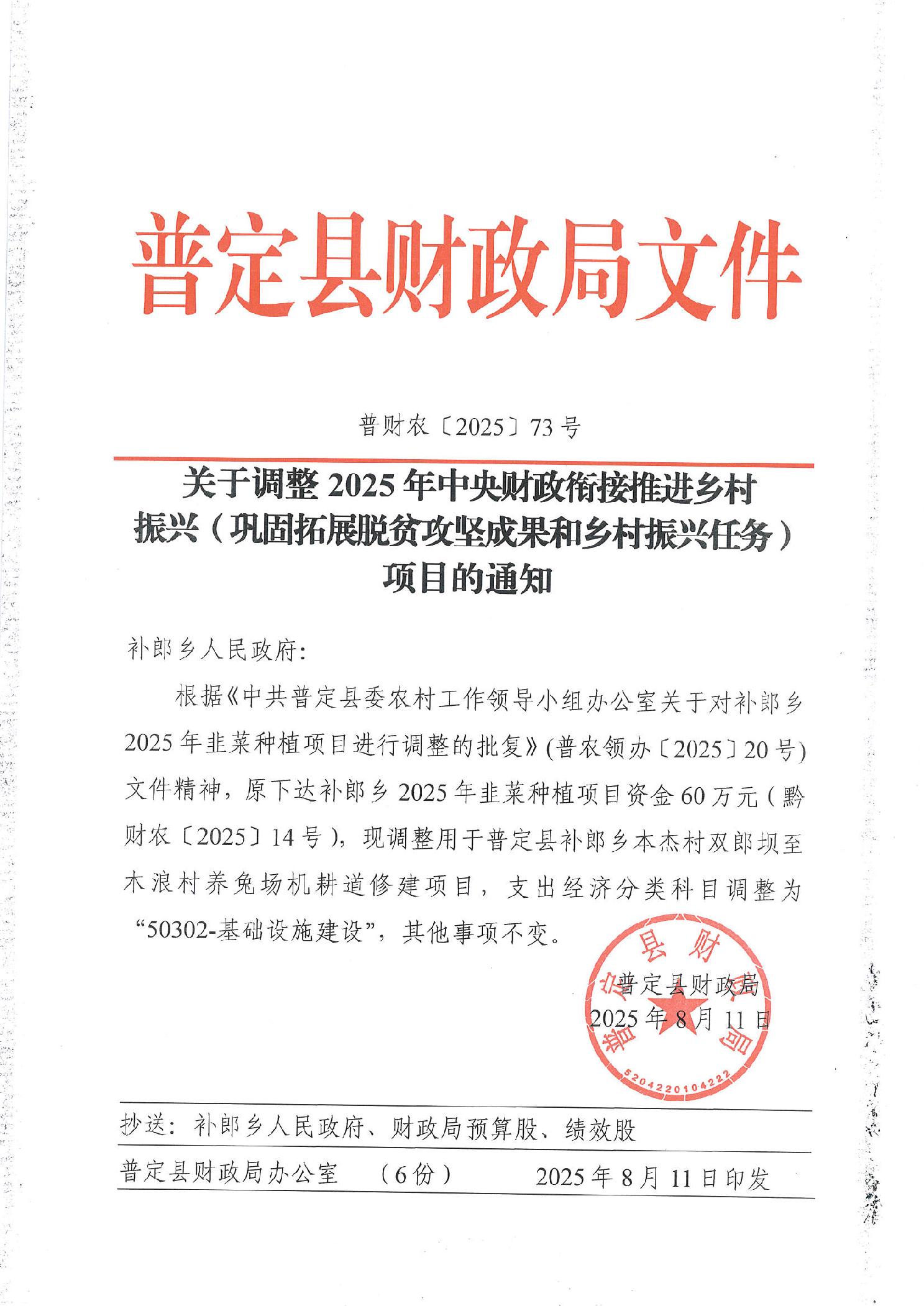 关于调整2025年中央财政衔接推进乡村振兴(巩固拓展脱贫攻坚成果和乡村振兴任务)项目的通知