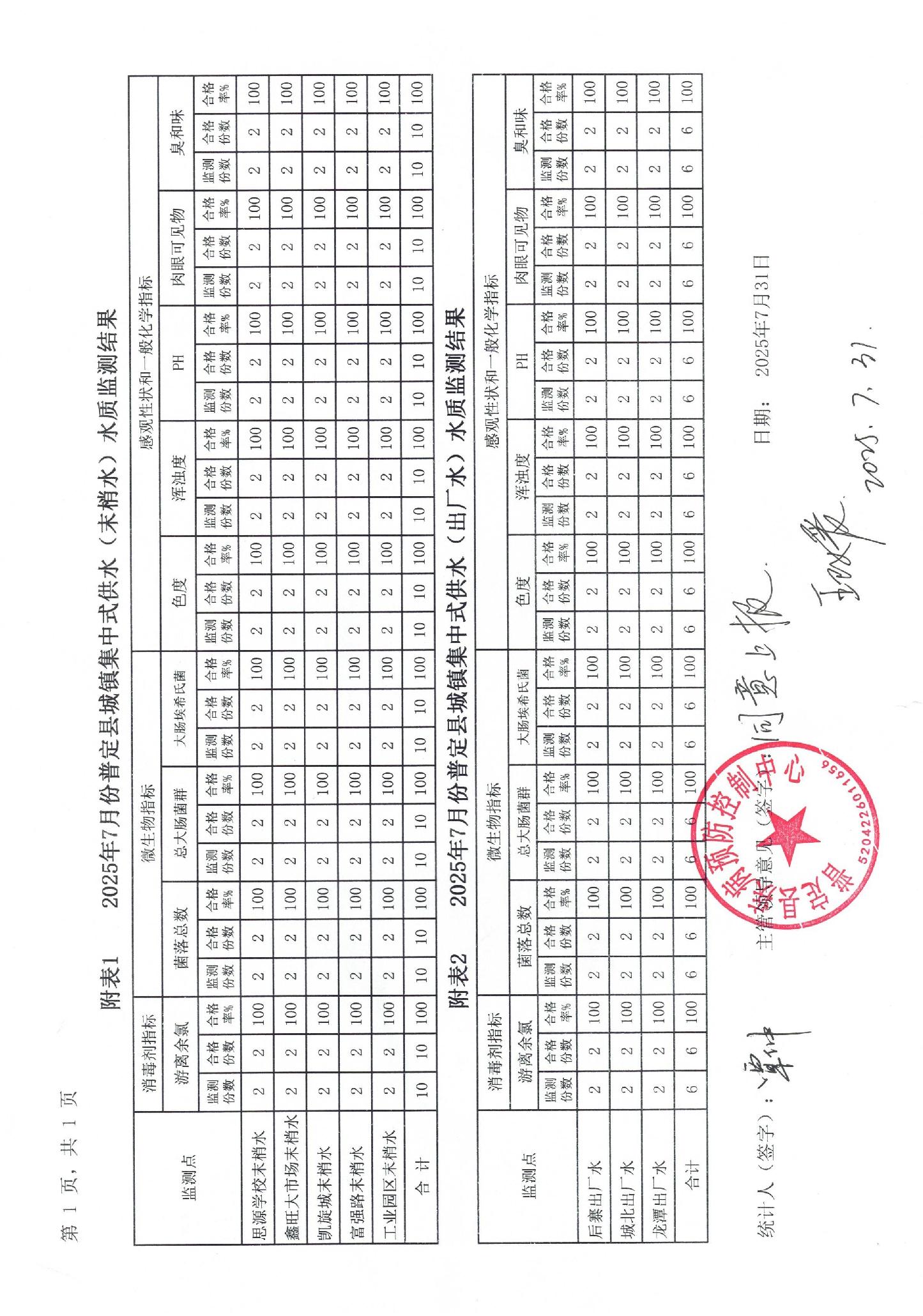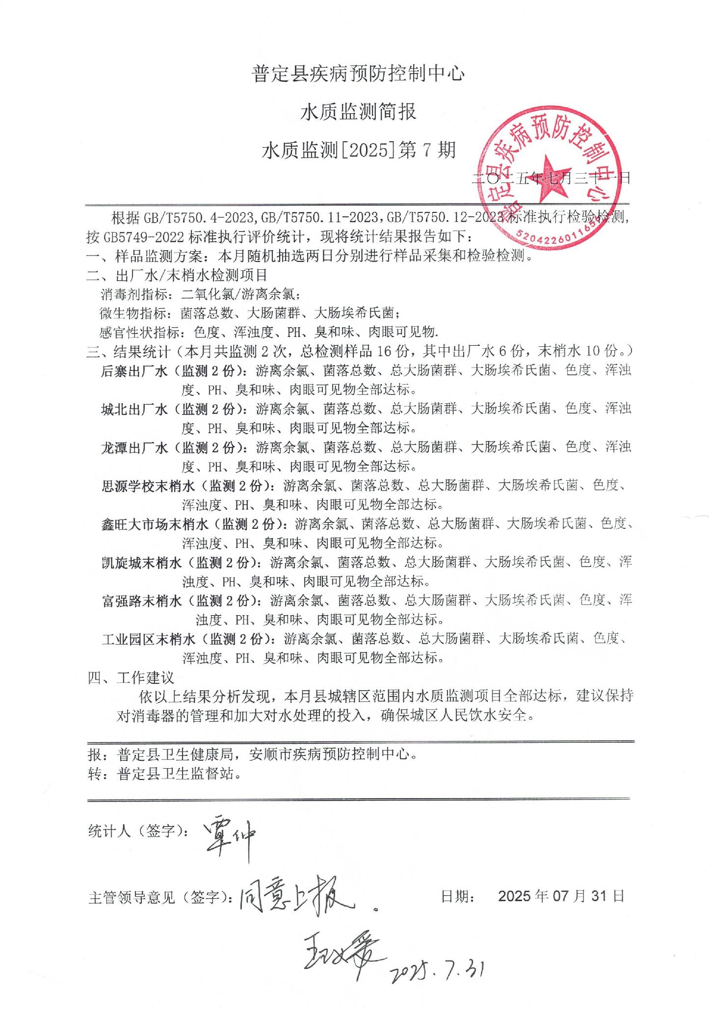普定县疾病预防控制中心2025年7月份水质检测结果公示